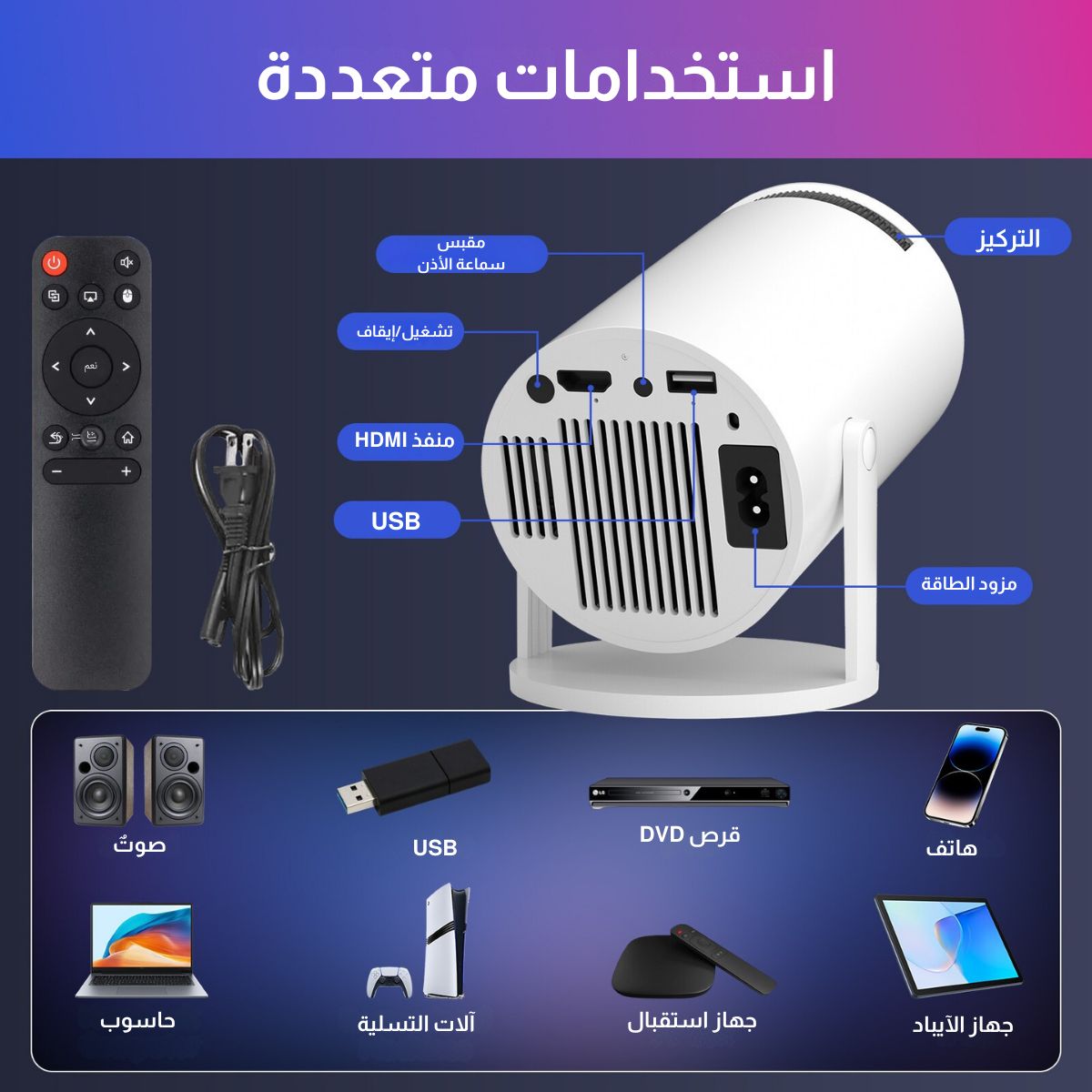 بروجكتر هو الحل المثالي لأي واحد مليت من شاشة التلفزيون الصغيرة. يعطيك تجربة سينما حقيقية، وفيه ألعاب كلاسيكية مدمجة. جهاز واحد فيه كلشي تحتاجه للوناسة.