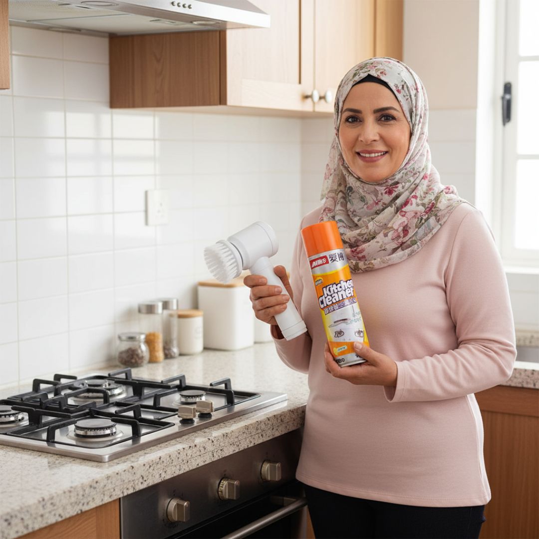 المجموعة السحرية ✨ فرشاة دوّارة + سبراي مذيب للدهون